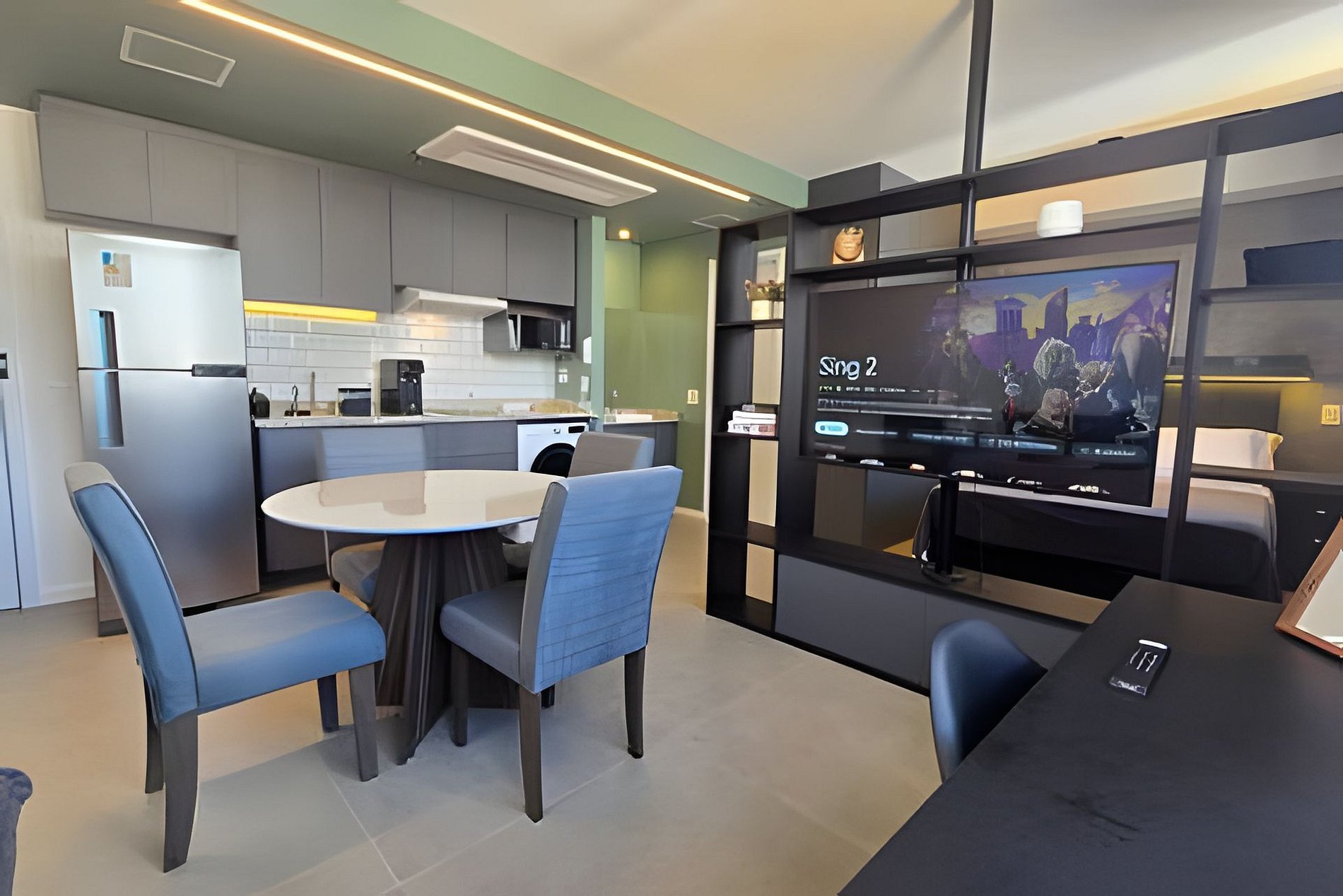 Studio Completo ao lado do Edifício EZ Towers, Huawei e principais empresas do mundo (BMW, Samsung, BYD, Porsche, LG, BYD, GWM, GAC, CGN, Goldwind, Hyundai, Cargill, KPMG e outras). Shoppings : Morumbi, Market Place e Parque da Cidade (cinema é maravilhoso!) Muito próximo ao Consulado dos Estados Unidos (USA). O nosso espaço acomoda confortavelmente até 2 pessoas em 01 cama casal e ar condicionado. Tem sofá cama na sala para acomodar mais 1 hóspede (criança).