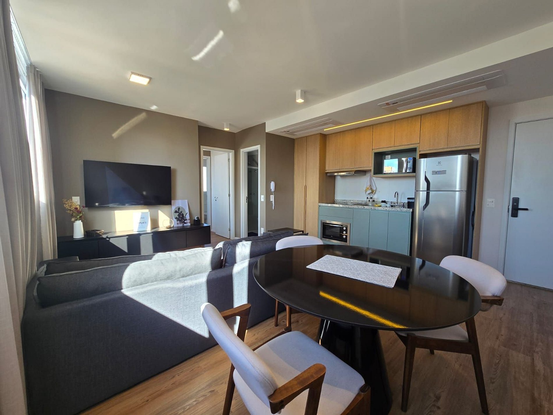 Este loft une praticidade, conforto e localização privilegiada. Com 1 suíte e 1 banheiro extra, perfeitos para oferecer comodidade e privacidade. A cozinha completa conta com airfryer, cooktop e cafeteira Nespresso, ideal para preparar refeições rápidas ou um café especial. O espaço ainda tem sofá-cama para 02 hóspedes extras, mesa que funciona tanto para refeições quanto para home office, além de internet rápida e TV para momentos de lazer.
